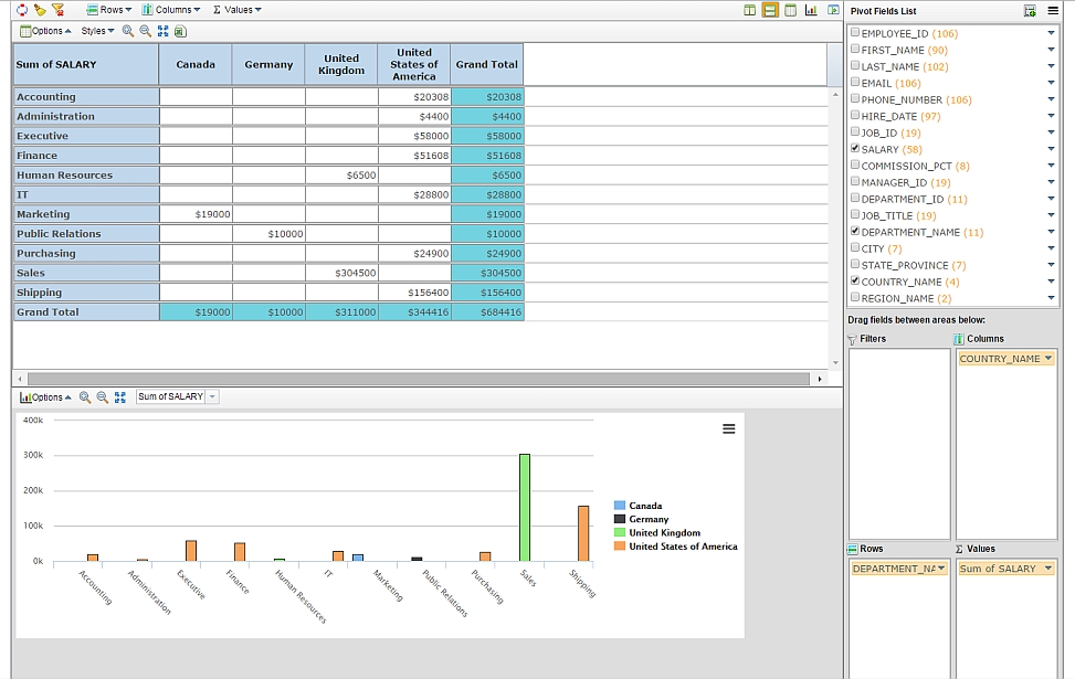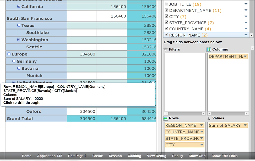 The SmartPivot Plug-in enables users to create multi-dimensional pivot reports using drag-and-drop functionality. Easily configure sub- and grand totals just like in Excel, in any APEX application.